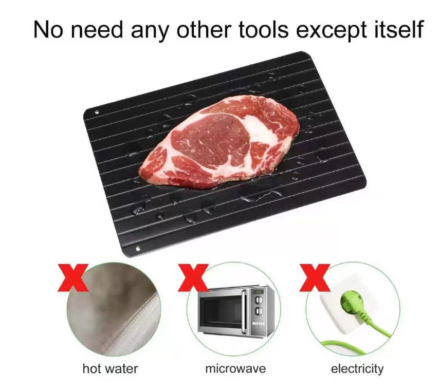 Esta bandeja premium ajuda-o a descongelar carne de forma muito mais rápida e natural, sem necessidade de utilizar água quente ou o micro-ondas.