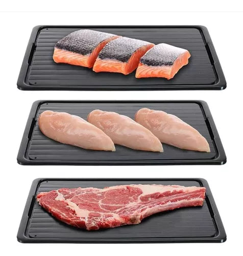 Placa de descongelação rápida: Ideal para frango, peixe, carne e outros alimentos.
